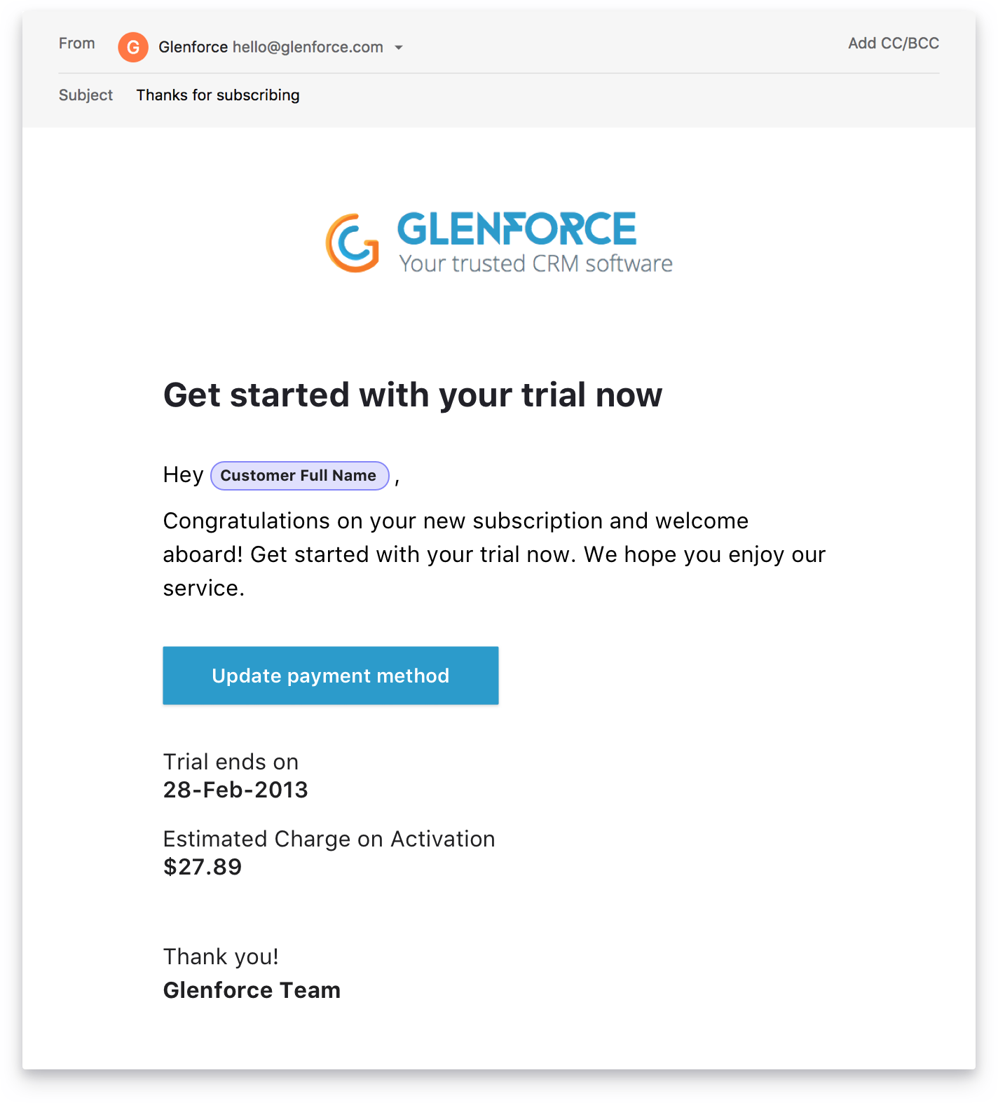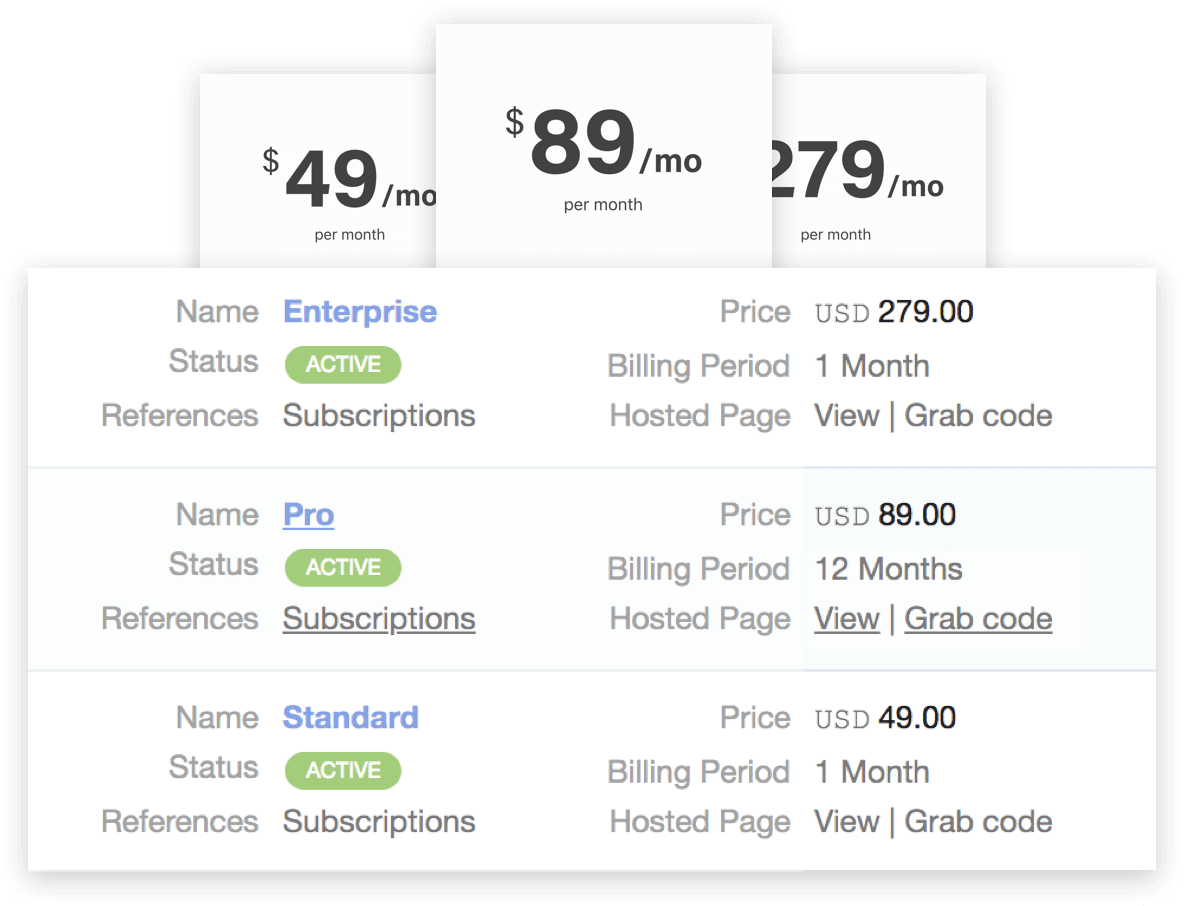 Create plans, before you charge your customers. Map out your pricing, billing frequency, trial duration, and taxes.